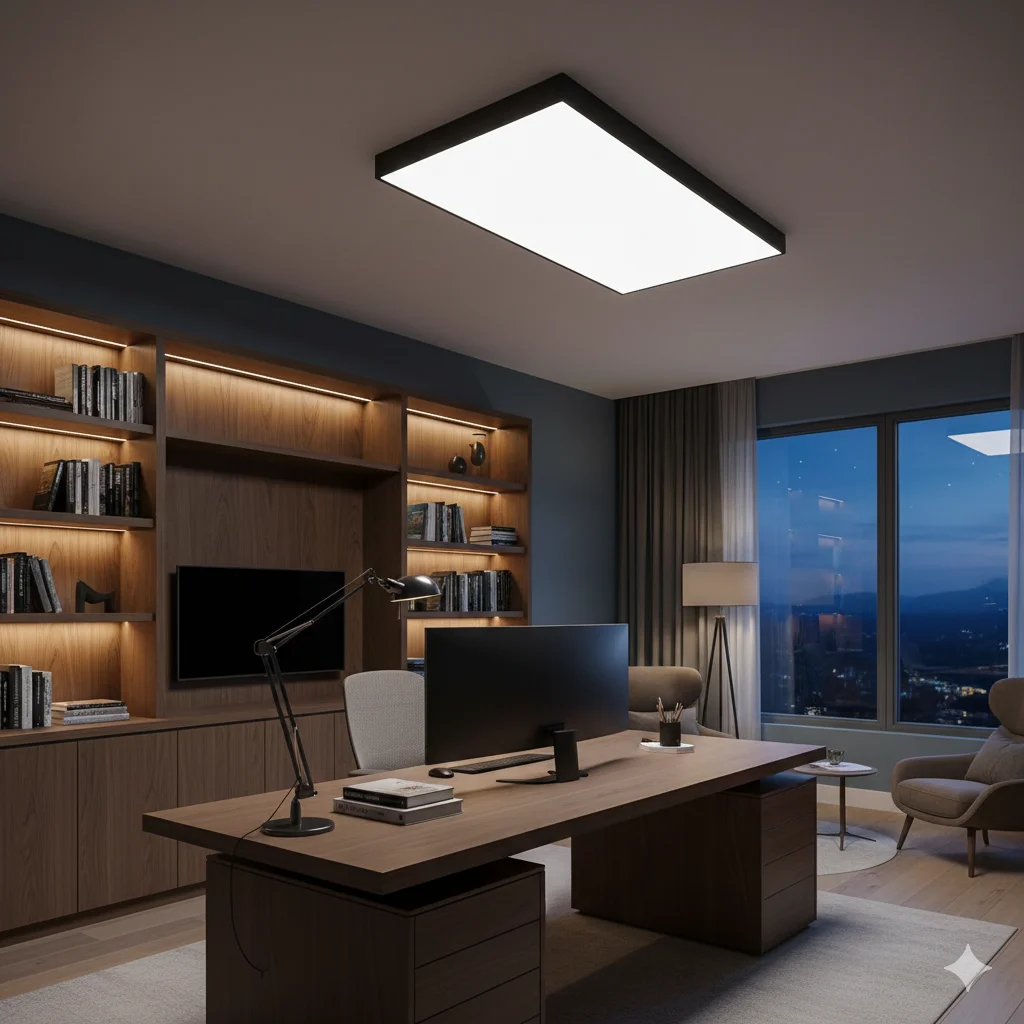Декоративная подсветка книжных полок или ниш с помощью LED-ленты поможет создать в комнате уютную, но строгую деловую атмосферу. Выбирая светильники для кабинета в коттедже, отдавайте предпочтение источникам с индексом цветопередачи более 80 Ra, чтобы оттенки документов и интерьера не искажались. Правильно настроенная световая среда в частном доме позволит сосредоточиться на важных задачах, сохраняя высокую концентрацию внимания в течение всего рабочего дня.