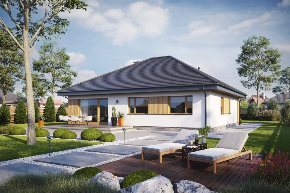Этот проект — отличный вариант для тех, кто ищет одноэтажный дом под ключ для постоянного проживания, сочетая современный стиль и функциональность.