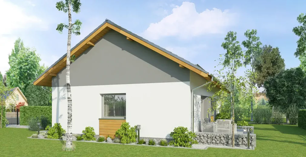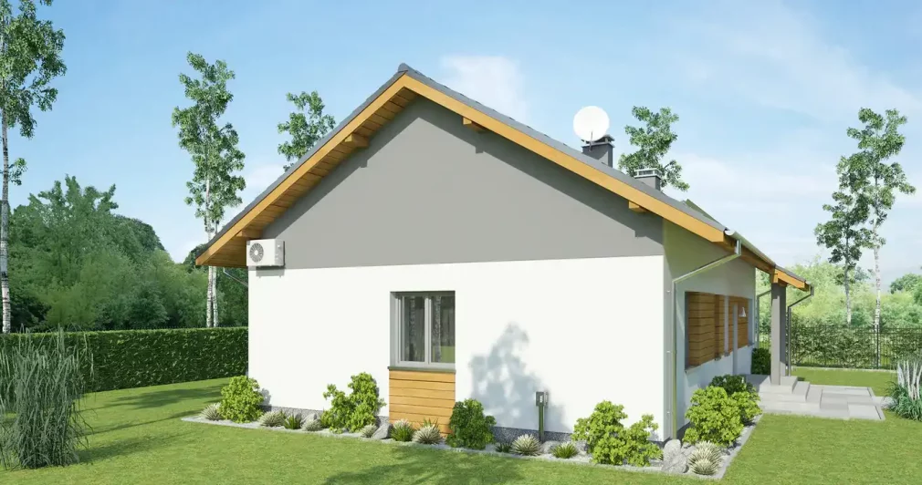Надёжная двускатная крыша и лаконичная форма здания гарантируют долговечность и гармонично вписываются в любой ландшафт. Этот проект станет отличным выбором для тех, кто хочет построить одноэтажный дом под ключ для постоянного проживания с идеальным балансом комфорта и функциональности.