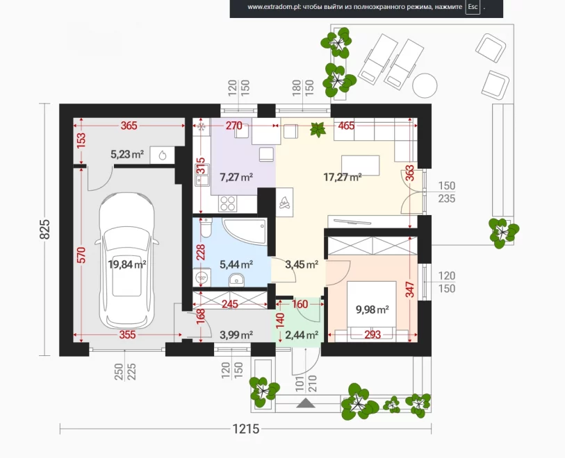 Это компактный и продуманный проект одноэтажного дома с гаражом, который идеально подойдёт владельцам участков средней ширины. Простая форма здания делает строительство лёгким и экономичным, а использование проверенных решений обеспечивает долговечность и комфорт эксплуатации.