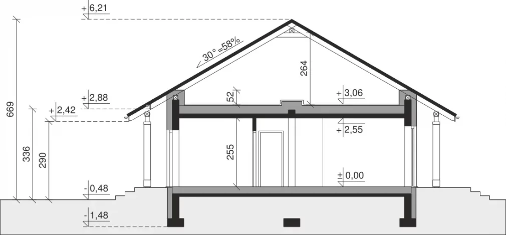 Проект дома с гаражом рассчитан на строительство из энергоэффективных материалов. Он подойдёт тем, кто ищет надёжный и современный вариант жилья с низкими эксплуатационными расходами и сбалансированной планировкой.