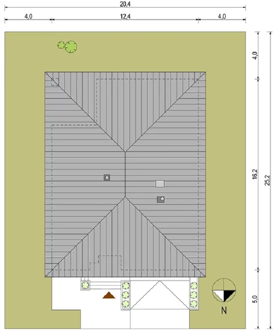Двухместный гараж, встроенный в основной объём здания, упрощает размещение автомобилей и хозяйственного оборудования. Простая форма дома и продуманная конструкция позволяют минимизировать затраты на строительство и эксплуатацию, а традиционная кирпичная технология обеспечивает долговечность.