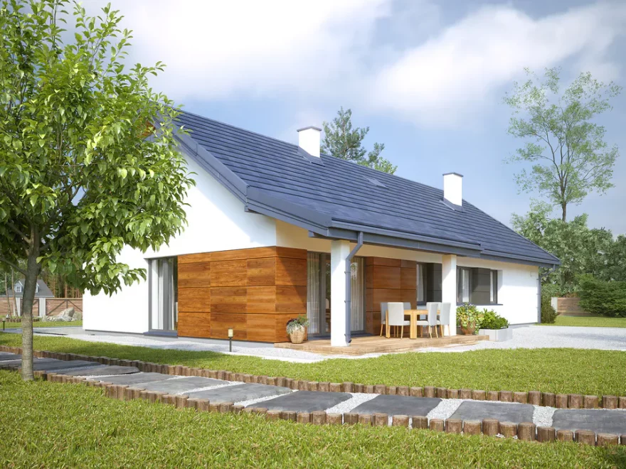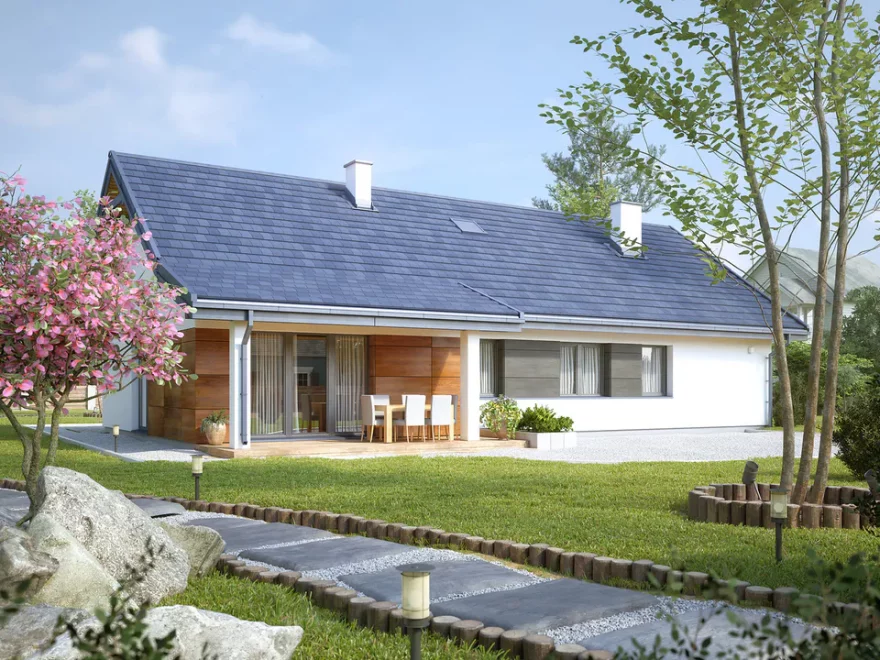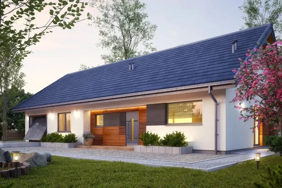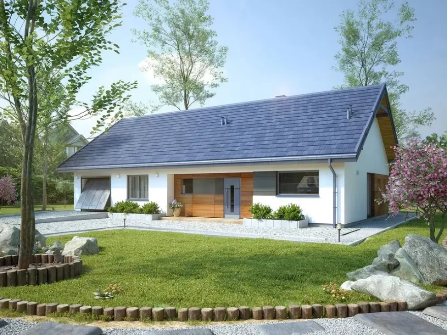 Этот одноэтажный дом с гаражом под ключ идеально подойдёт для семей, которые ценят функциональность, комфорт и гармоничное сочетание внутреннего пространства с наружной террасой.