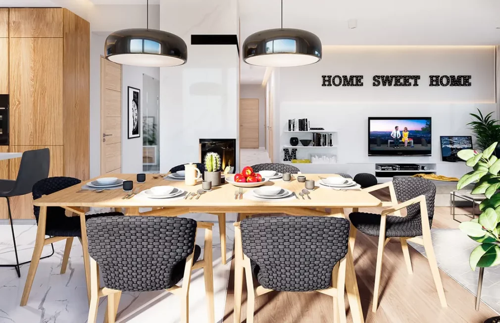 Планировка продумана до мелочей: дневная зона включает просторную гостиную и столовую с выходом на террасу, а также светлую кухню с угловым окном и кладовой. Большие окна наполняют помещения естественным светом, открывая живописный вид на сад и создавая атмосферу уюта и открытости.