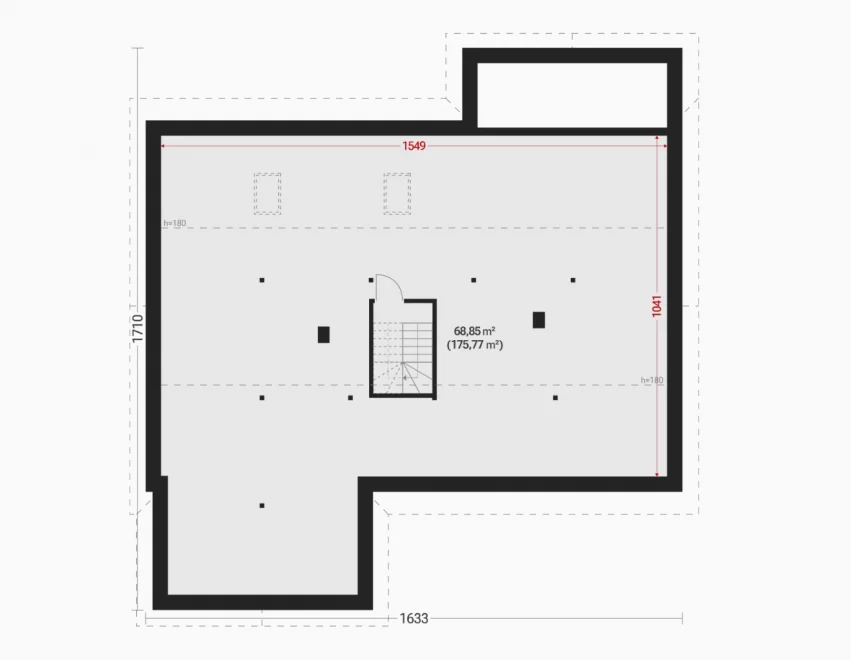 Особенностью проекта является чердак площадью почти 69 м², который можно использовать как кладовую или впоследствии обустроить под жилую мансарду. Такое решение делает дом особенно гибким и удобным для семей, планирующих расширение пространства.