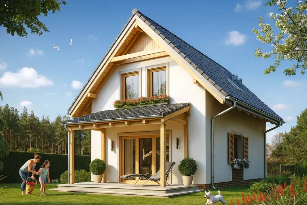 Проект дома AET-123 — это функциональный и уютный одноэтажный дом с мансардой, идеально подходящий для узкого участка. Простая двускатная крыша и компактная форма делают строительство экономичным, а внешний вид — стильным и гармоничным. Такой проект дома с мансардой станет отличным выбором для семьи, которая ценит уют, рациональность и практичность.
