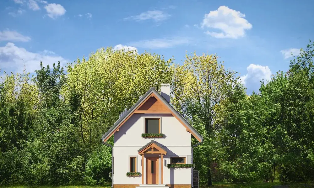 Проект дома выделяется простотой формы, энергоэффективностью и функциональностью планировки. Это небольшой дом с мансардой, который легко впишется в ландшафт и подойдёт как для постоянного проживания, так и для дачи.