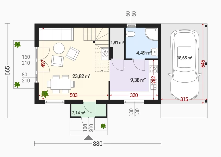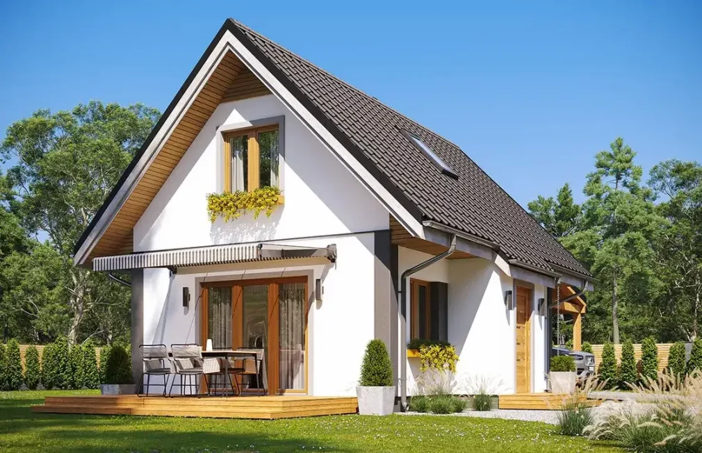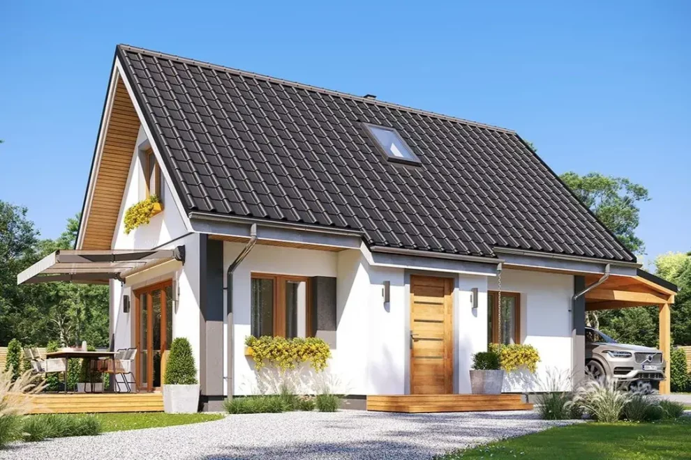 Проект дома сочетает в себе доступность, энергоэффективность и традиционный стиль. Он идеально подойдёт для семей, ищущих небольшой дом с мансардой и навесом для авто, который будет уютным и экономичным в содержании.