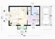 На первом этаже расположена просторная гостиная, объединённая со столовой и кухней — сердце дома, наполненное светом и уютом. Здесь также предусмотрены ванная комната, прихожая и подсобное помещение, а навес для автомобиля дополняет функциональность проекта.