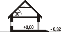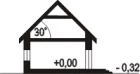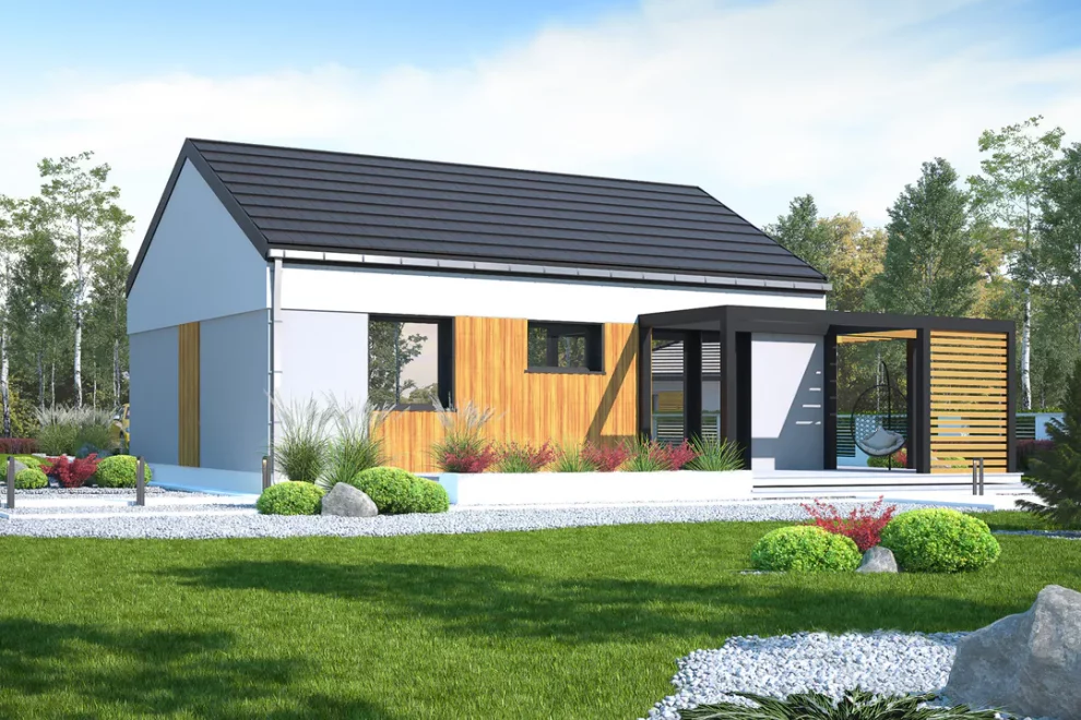 Дом отличается небольшой общей площадью — 50,90 м², что позволяет минимизировать расходы на строительство и эксплуатацию. Высота здания составляет 5,8 м, а крыша с углом наклона 30° придаёт дому аккуратный и современный облик.