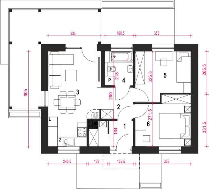 Проект 132 отлично подходит для семьи из 3–4 человек. Простая форма здания и лаконичный дизайн фасада делают дом практичным, долговечным и энергоэффективным, при этом создавая уютное жилое пространство.