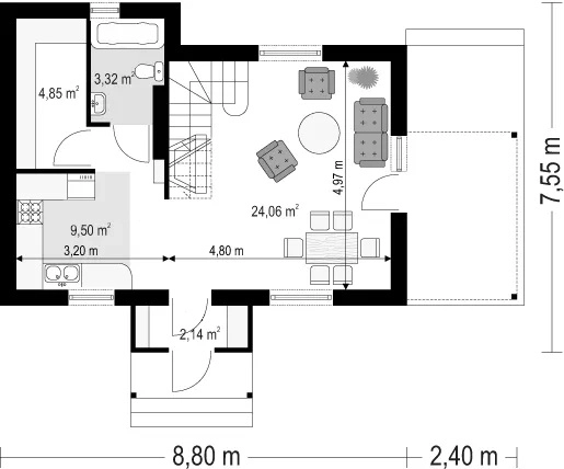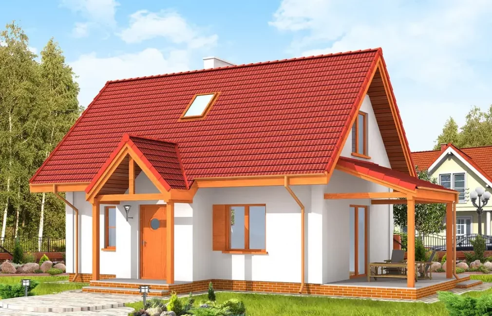 Дом 7х8 с мансардой идеально подходит для постоянного проживания, дачи или сдачи в аренду. Планировка дома 7 на 8 обеспечивает комфорт, уют и рациональное использование каждого квадратного метра. Классическая двускатная крыша и камин в гостиной создают традиционную атмосферу, а терраса обеспечивает приятное место для отдыха на свежем воздухе. Этот каркасный дом 7х8 одноэтажный с мансардой сочетает практичность и эстетику, оставаясь доступным по стоимости и удобным в эксплуатации.