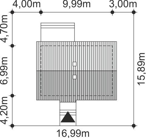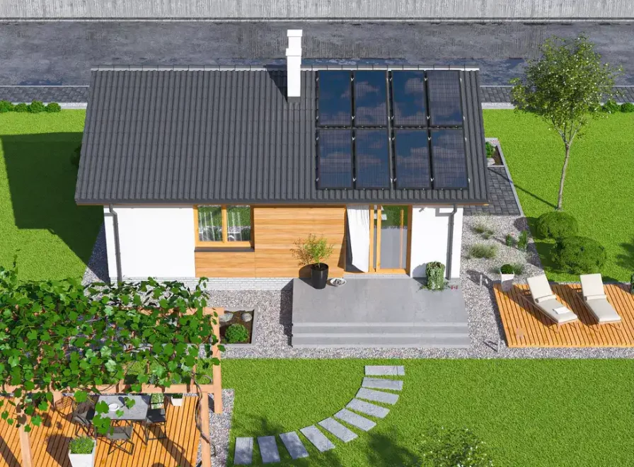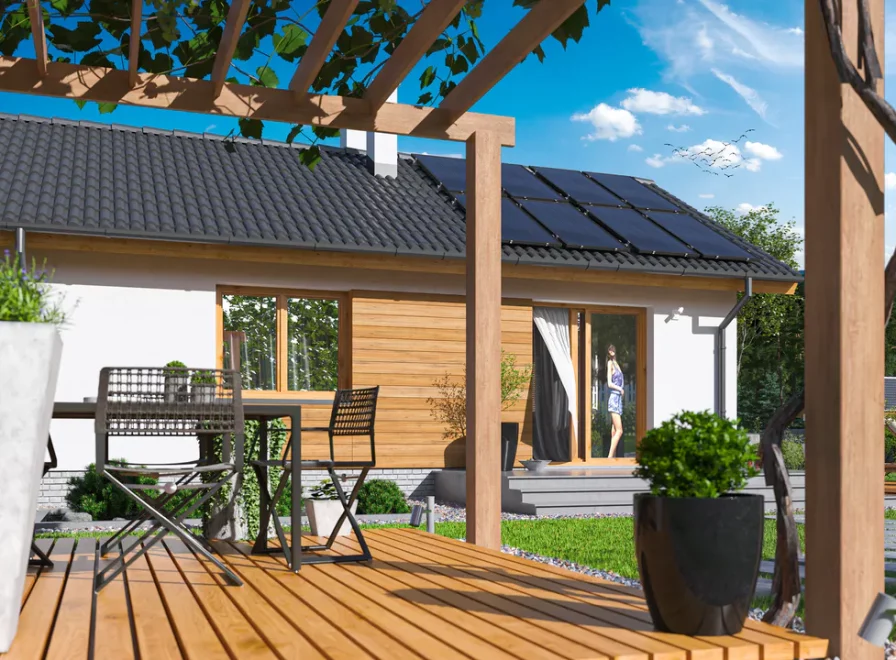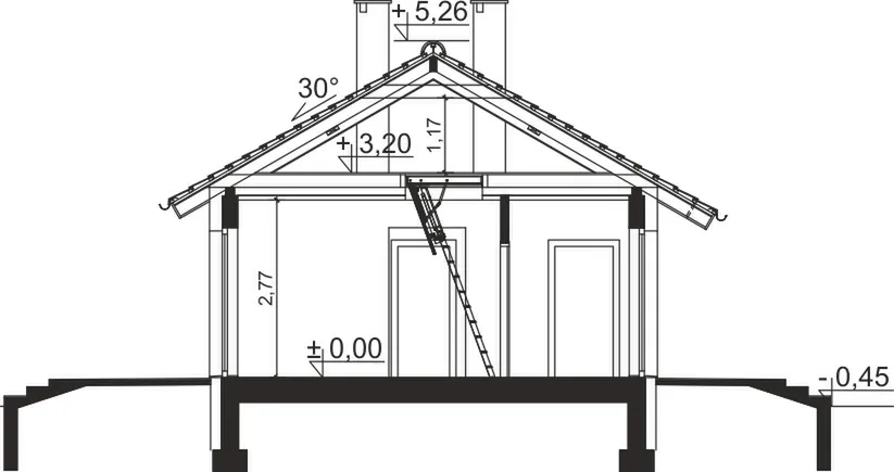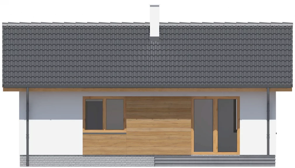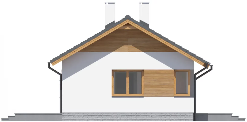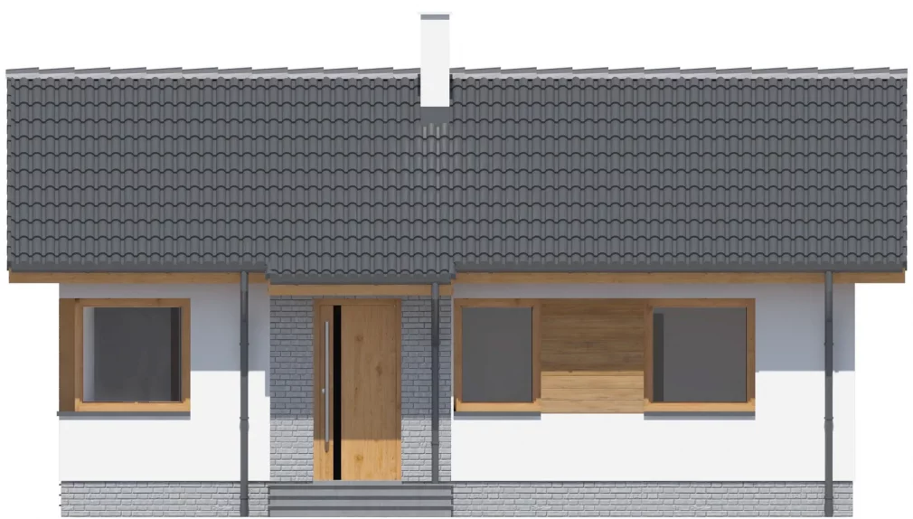 Архитектура дома проста и элегантна: традиционная двускатная крыша под углом 30°, чистые линии фасада и лаконичные формы придают зданию современный и гармоничный вид. Компактные размеры делают проект оптимальным решением даже для небольших участков, а энергоэффективные технологии обеспечивают комфорт в любое время года.