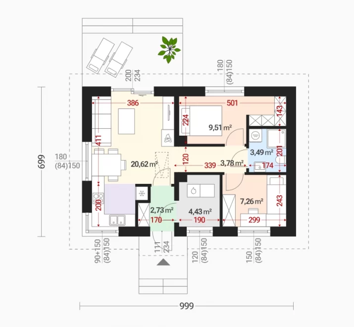 Каркасный дом 6 на 9 AET-146 — это надёжный, удобный и доступный вариант для тех, кто хочет купить или заказать одноэтажный дом с оптимальной планировкой, современным дизайном и продуманной инженерией.