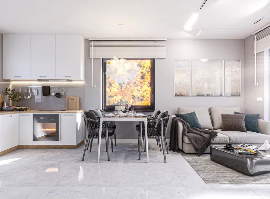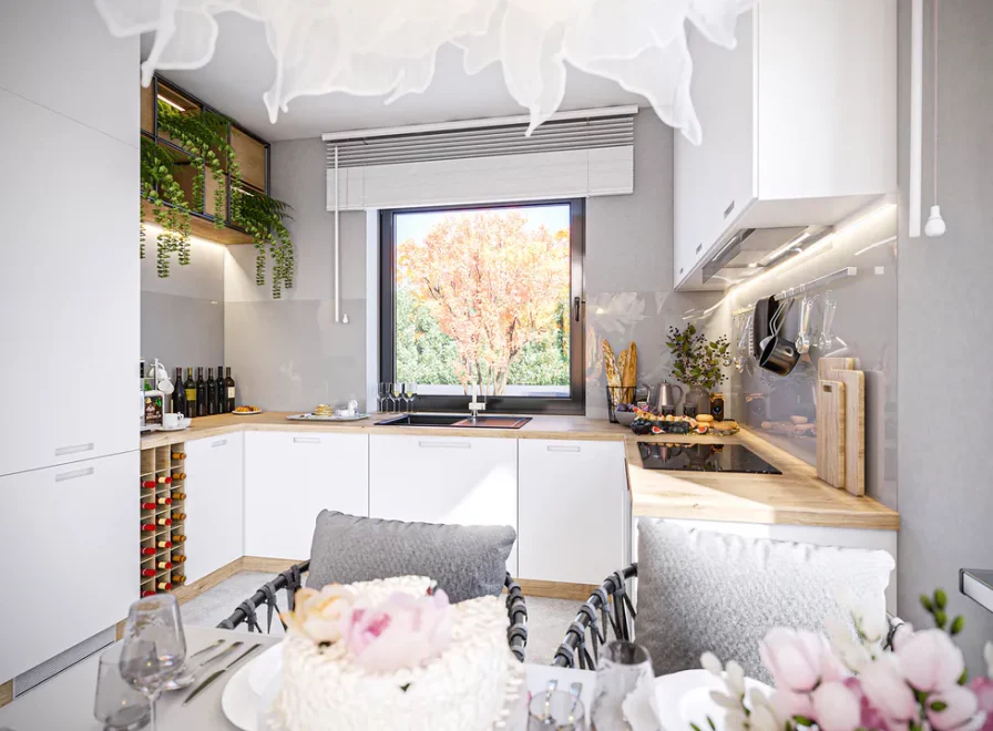 Фасад дома можно оформить как в современном, так и в классическом стиле, используя натуральные материалы. При проектировании особое внимание уделено экологичности и энергоэффективности: предусмотрена возможность установки фотогальванической системы и тёплого пола.