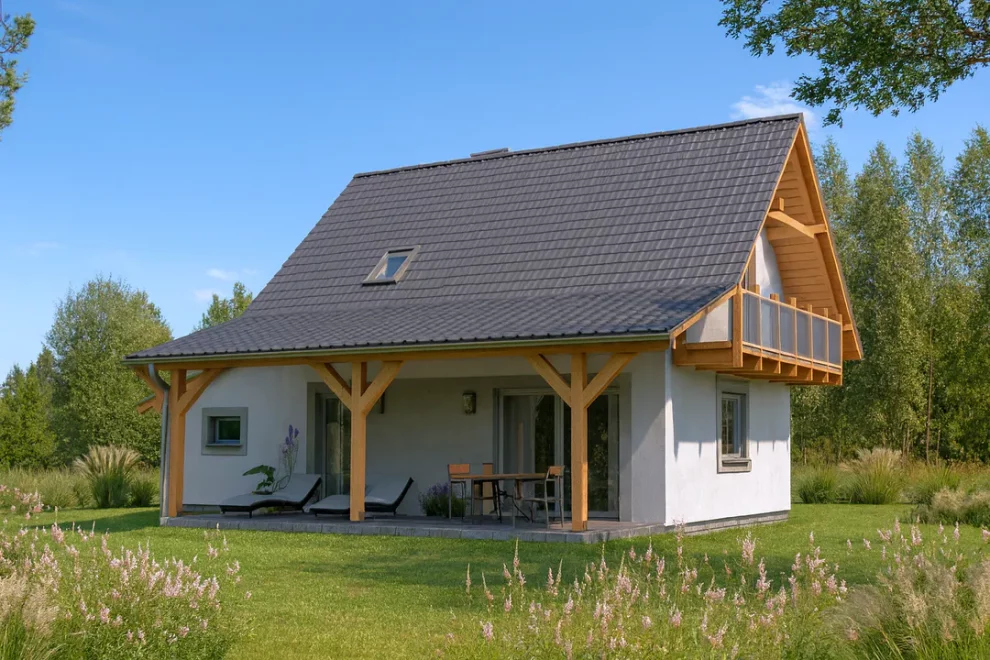 Фасад дома выполнен в традиционном стиле, гармонично вписывается в любой ландшафт, а использование каркасных технологий позволяет сократить сроки строительства и снизить эксплуатационные расходы. Этот проект станет оптимальным выбором для тех, кто ищет дом 6 на 10 одноэтажный с мансардой — сочетание стиля, практичности и современных строительных решений.
