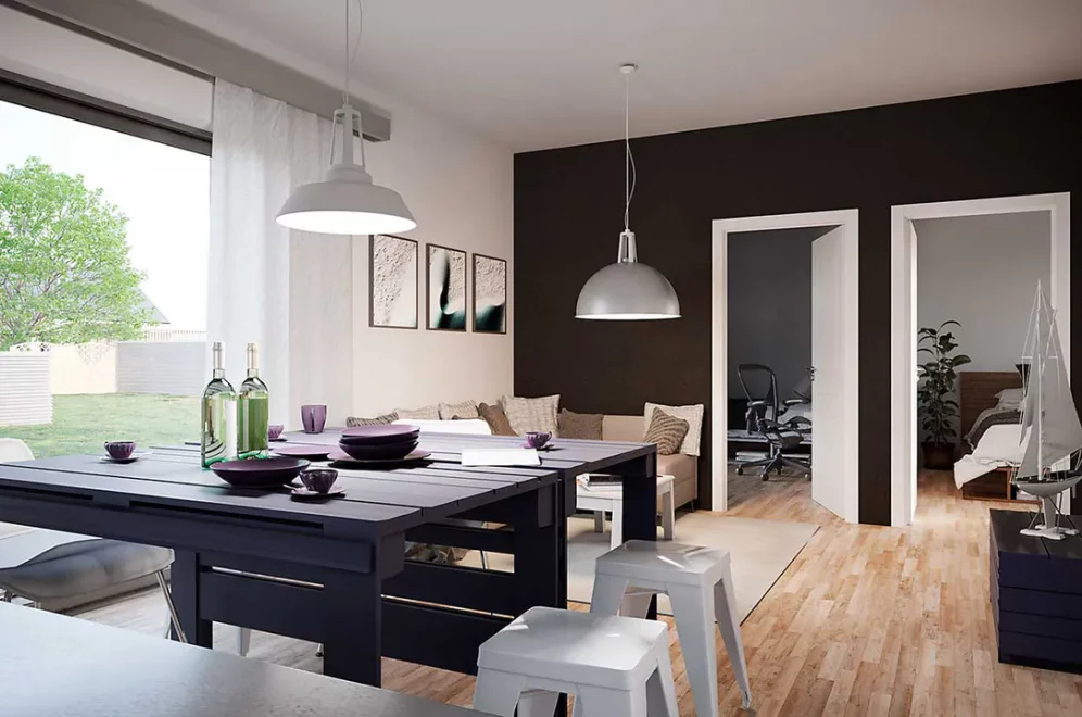 Проект дома 6х10 с отличной планировкой сочетает экономичность, энергоэффективность и современный дизайн. Открытая дневная зона и минимизация коридоров создают ощущение простора и уюта. Декоративная навесная зона и терраса добавляют стиль и уют, позволяя наслаждаться отдыхом на свежем воздухе.