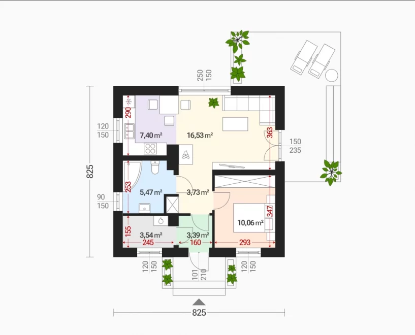 Проект дома AET-167 представляет собой продуманное и функциональное решение для тех, кто ищет компактное жильё на небольшом участке. Дом 8 на 8 одноэтажный спроектирован с учётом максимальной рациональности использования пространства. Внутри расположена светлая и просторная зона, объединяющая кухню с гостиной, что позволяет всей семье проводить время вместе и создавать уютную атмосферу для общения. Дополнительно в доме предусмотрена отдельная спальня, ванная комната и котельная, обеспечивающие комфортное и удобное проживание.