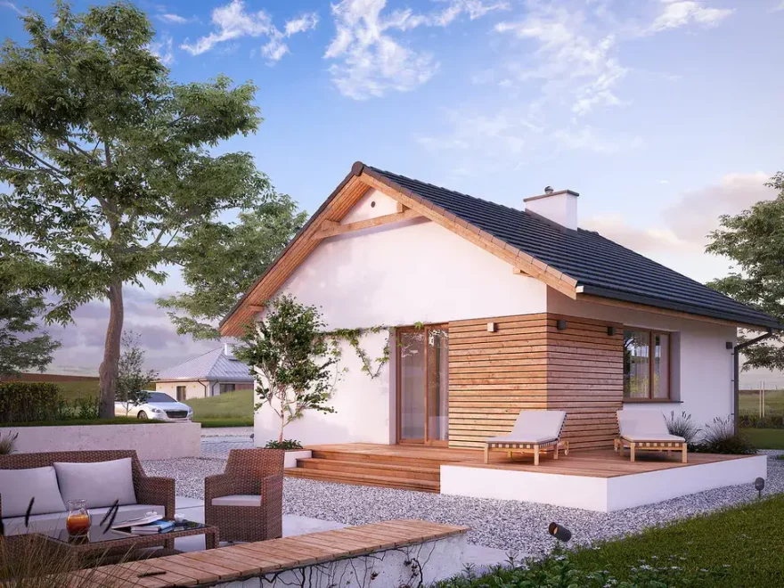 Проект дома 8х8 одноэтажный продуман таким образом, чтобы каждая зона была максимально удобной и практичной. Гостиная с кухней образует центр жизни дома, где легко организовать столовую зону, а спальня и санузел обеспечивают приватность и комфорт. Каркасная технология строительства позволяет возвести дом быстро, сохраняя тепло и долговечность конструкции. Это универсальный вариант для небольших участков, где важна функциональность, уют и экономичность.