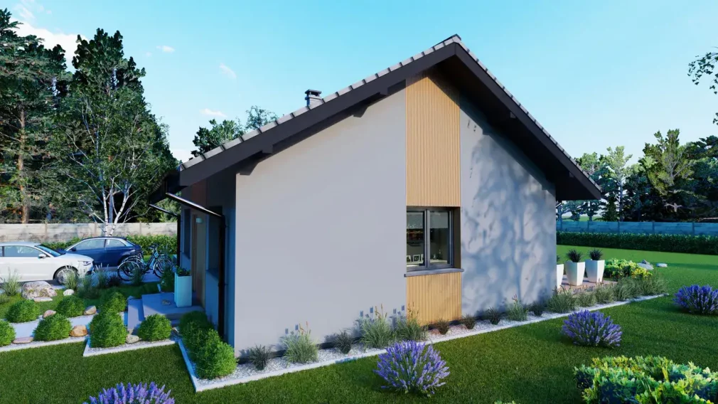 Проект дома AET-169 представляет собой компактный и функциональный каркасный дом 8 на 8 одноэтажный, рассчитанный на комфортное проживание небольшой семьи. Благодаря своей рациональной планировке здание экономично в строительстве и идеально подходит для участков ограниченной площади. Простая форма дома облегчает внутреннюю организацию пространства и делает строительство менее затратным, а двускатная крыша обеспечивает оптимальное решение для стропильной системы и кровли.