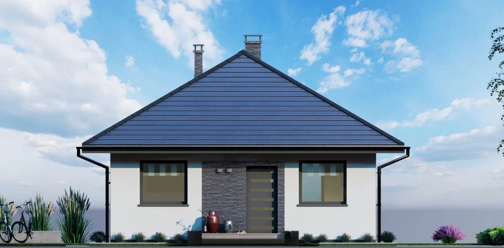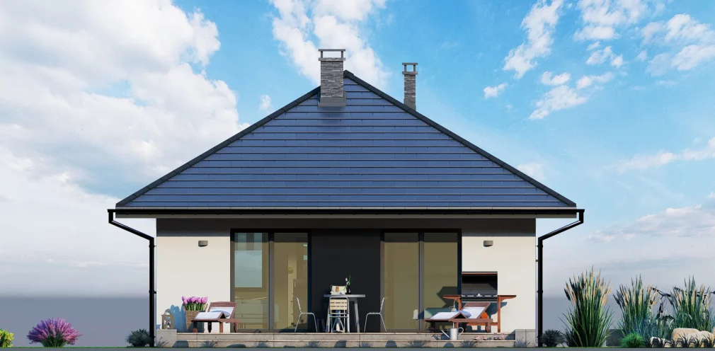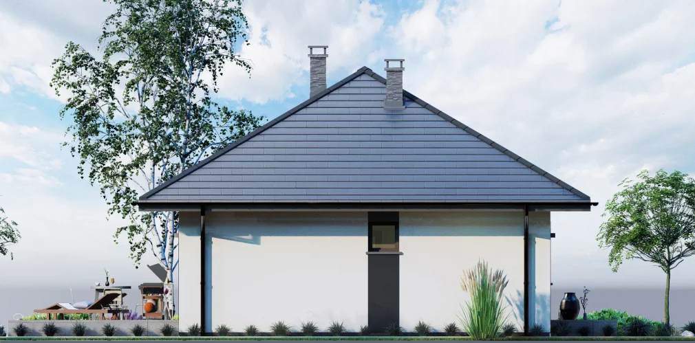 Внешний вид дома выдержан в традиционном стиле, гармонично вписывающемся в любую окружающую среду. Терраса или открытая зона перед домом станет уютным местом для отдыха на свежем воздухе. Этот проект объединяет комфорт, практичность и стиль, предлагая идеальное решение для постоянного проживания или дачи.