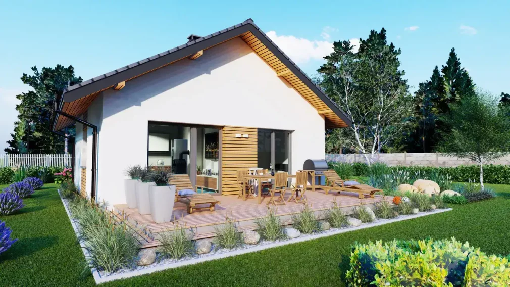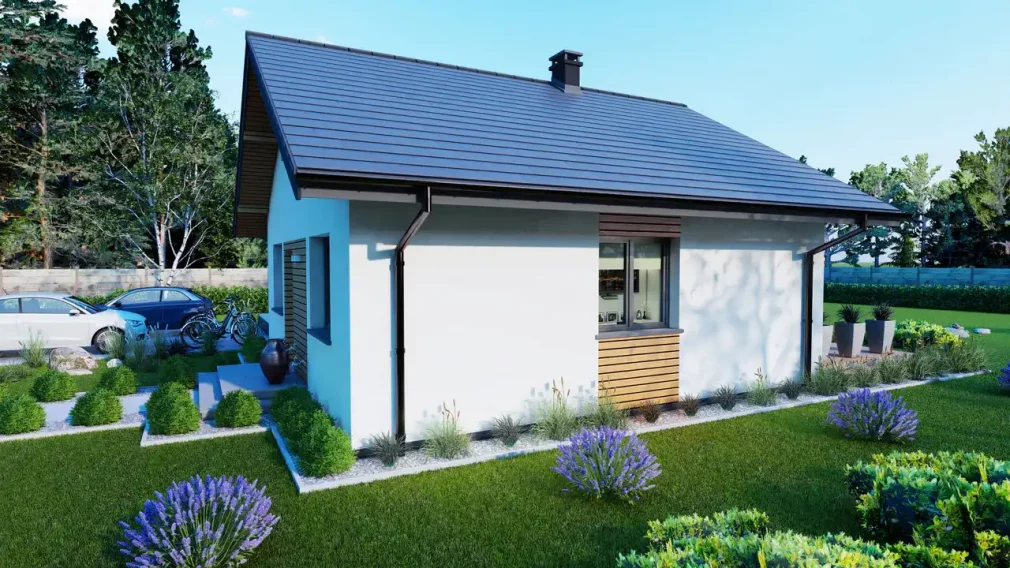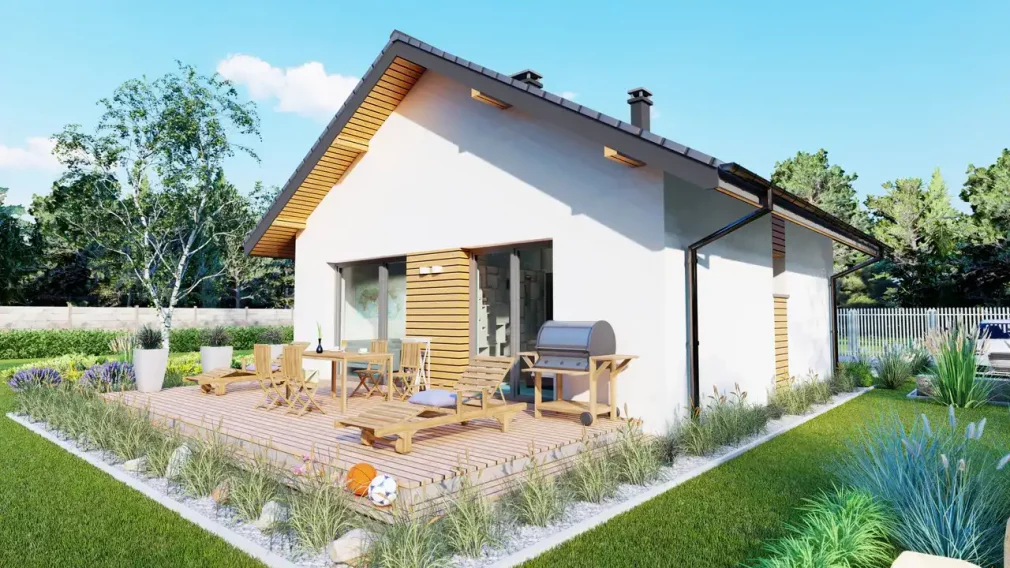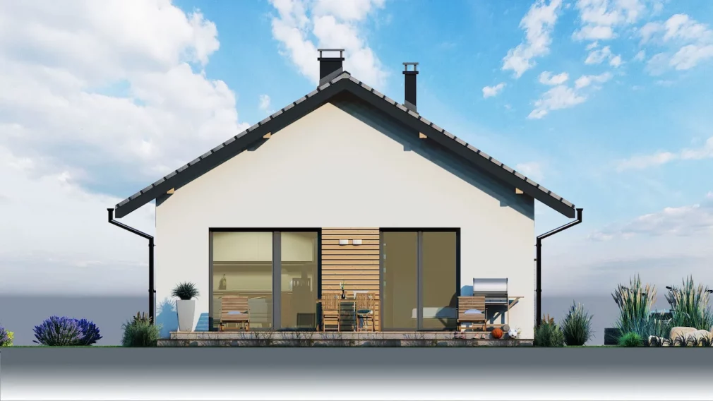 Каркасный дом 8х8 одноэтажный отличается экономичностью строительства и эксплуатации, а простая форма здания позволяет эффективно использовать участок. Угол наклона крыши обеспечивает надежную защиту от осадков, а аккуратная конструкция фасада гармонично вписывается в любой ландшафт.