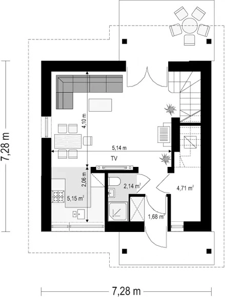 Проект дома с мансардой AET-177 — функциональное решение для узкого участка, сочетающее уют, практичность и стиль. Компактная форма позволяет эффективно использовать пространство и сократить расходы на строительство. Дом рассчитан на отдельностоящее размещение и прекрасно подойдёт для семьи из 3–4 человек.