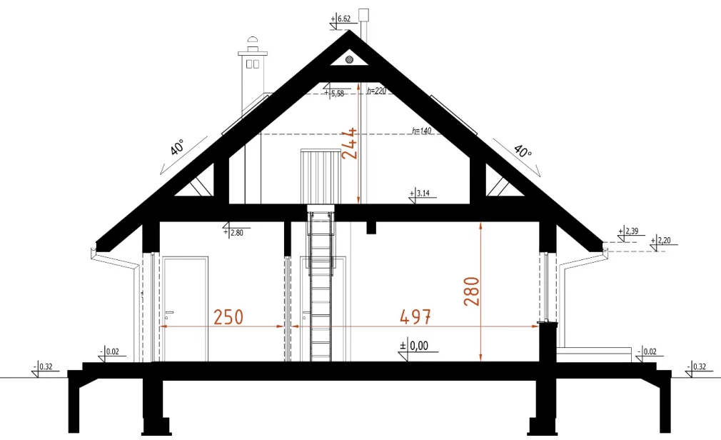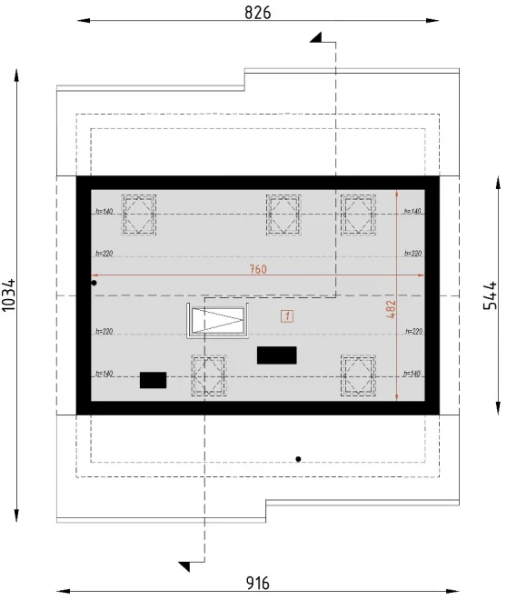 В проекте предусмотрена кладовая рядом с кухней, спальня, ванная комната и две террасы, идеально подходящие для отдыха на свежем воздухе. Традиционный фасад и аккуратные пропорции делают этот проект одноэтажного дома с мансардой универсальным и привлекательным в любом окружении.