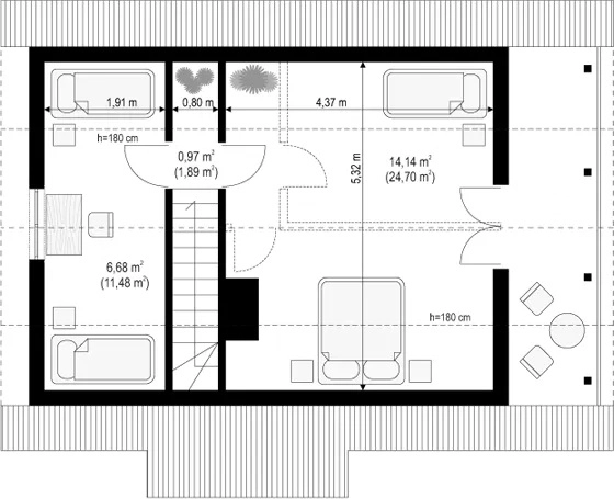 Проект дома с мансардой AET-180 — это идеальное сочетание функциональности, уюта и экономичности. Дом спроектирован для участка средней ширины и прекрасно подойдёт как для постоянного проживания, так и в качестве загородного или дачного варианта. Простая и лаконичная архитектура делает строительство быстрым и доступным, а двускатная крыша придаёт дому классический, гармоничный облик.