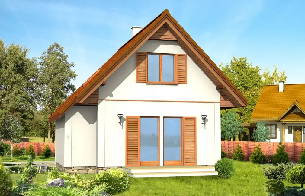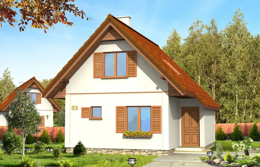 Дом выполнен в одноэтажной конструкции с жилой мансардой, что позволяет рационально использовать пространство и получить комфортное жильё при минимальной площади застройки.