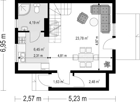 Проект дома с мансардой 182 — это продуманное и компактное решение для узких или небольших участков. Простая и лаконичная форма здания делает дом универсальным: он гармонично впишется как в городскую, так и в загородную застройку.