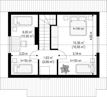 На мансарде размещены две спальни и коридор, обеспечивающие приватность и удобство для жильцов. Эти комнаты могут использоваться как для членов семьи, так и для гостей.
