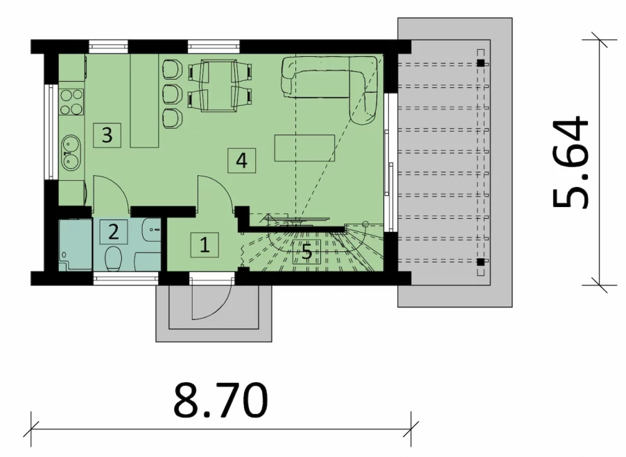 Проект идеально подойдёт тем, кто ищет одноэтажный дом с мансардой для семьи из 3–4 человек. Современный стиль, функциональная планировка и возможность круглогодичного проживания делают его универсальным и практичным выбором.