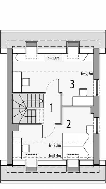 Мансарда превращает проект в полноценное жильё, предлагая две уютные комнаты и небольшой коридор. Это пространство можно использовать как спальни, кабинет или игровую зону, создавая приватную ночную зону отдельно от дневной зоны дома. Высокие стены мансарды и продуманный наклон крыши придают помещению особую атмосферу уюта и света.