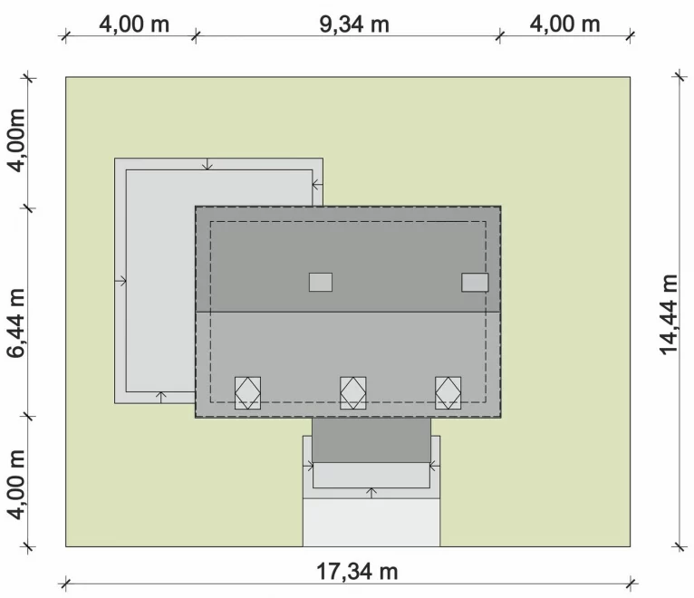 Проект дополнен террасой, создавая уютное продолжение дневной зоны и превращая его в современный одноэтажный дом с террасой проект. Это также отличный пример одноэтажного дома с террасой и проекта дома с мансардой и террасой, где функциональность, уют и стиль гармонично сочетаются.