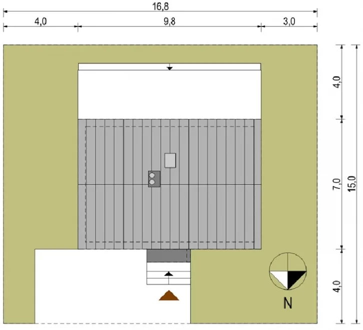 Проект AET-195 — современный и лаконичный одноэтажный дом с террасой, отличающийся простой геометрией и двускатной крышей без карнизов, отражающей актуальные архитектурные тенденции. Дом идеально подойдет для небольшой семьи, ценящей минимализм и функциональность.