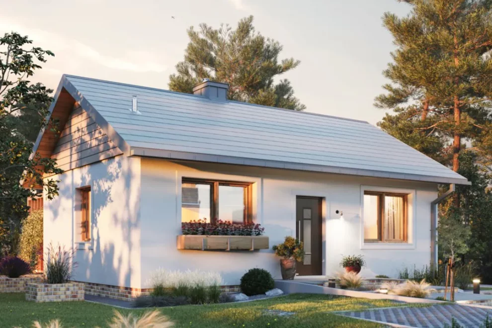 Проект AET-197 создан для тех, кому интересны современные решения и практичное пространство. Архитектура дома выполнена в спокойном минималистичном стиле, который подчёркивает аккуратный силуэт и простоту форм. Это делает его привлекательным для тех, кто изучает проекты домов до 100 кв м и выбирает функциональность без перегрузки деталям.