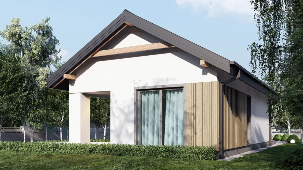 Проект 198 разработан для тех, кто ценит рациональное пространство и спокойную архитектуру. Его компактная организация отлично подходит покупателям, рассматривающим проекты домов до 100 кв м в качестве альтернативы городской квартире. Спокойные линии фасада и аккуратная двускатная крыша создают гармоничный внешний облик.