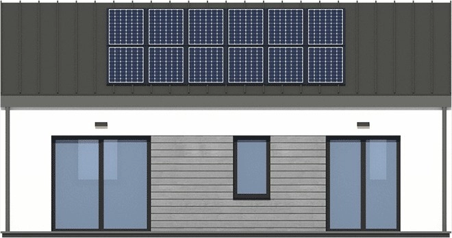 Проект AET-203 представляет собой аккуратный одноэтажный дом, выполненный в спокойном современном стиле. Архитектура строения подчёркивает чистые линии и рациональное использование пространства, благодаря чему дом подходит покупателям, выбирающим проекты домов до 100 кв м с упором на функциональность. Просторная зона гостиной объединена с кухней и обеденным участком, формируя удобное место для семейного отдыха.