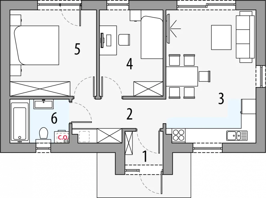 Планировка остаётся компактной, но при этом продуманной, что делает проект отличным выбором для владельцев небольших участков. Благодаря своей логичной структуре дом вписывается в запросы покупателей, изучающих проекты домов до 100 квм, и ищущих сочетание эстетики и практичности в одном решении.