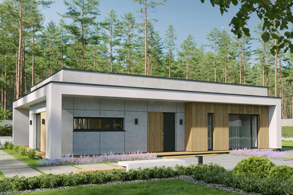 Проект AET-216 — это современный одноэтажный дом с плоской крышей, который сочетает стиль, комфорт и функциональность. Дом идеально подходит для семьи из 3–5 человек и отличается рациональной планировкой, светлыми помещениями и продуманной зональностью.