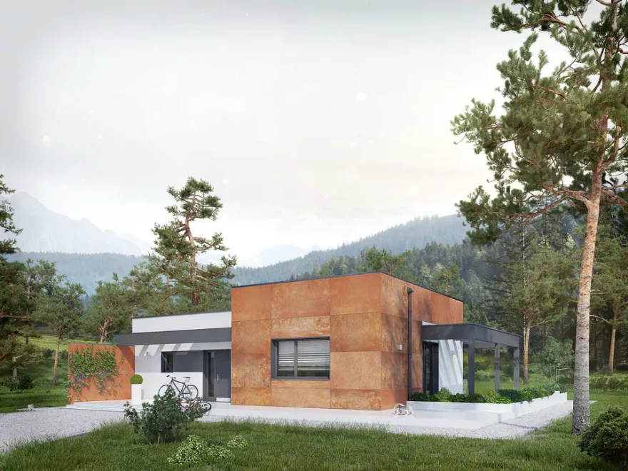 Каркасно-панельный дом с плоской крышей AET-217