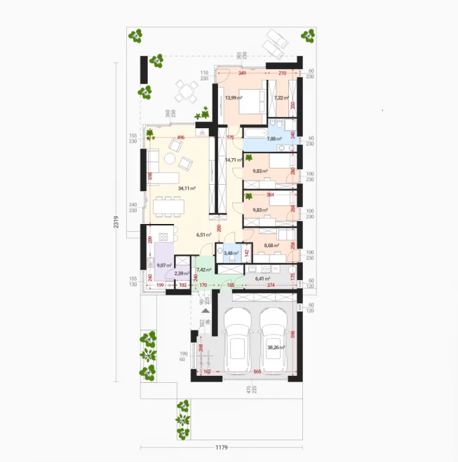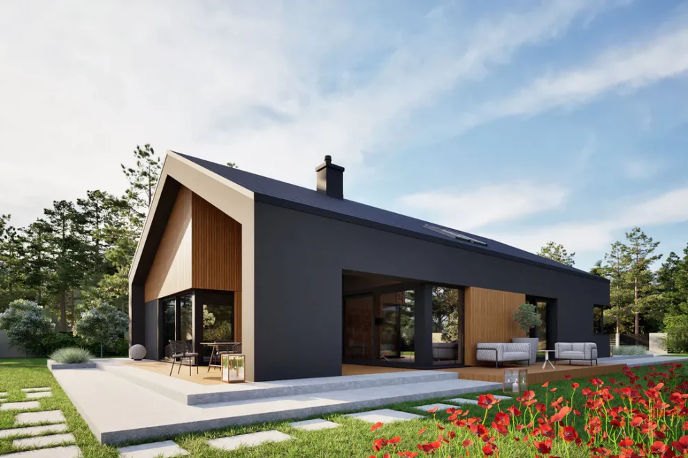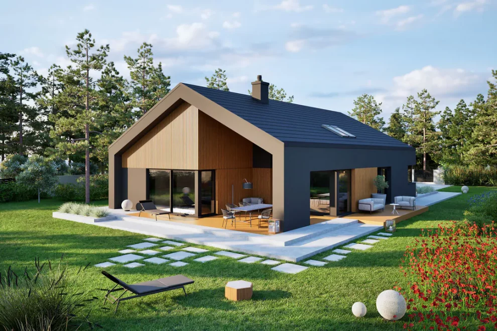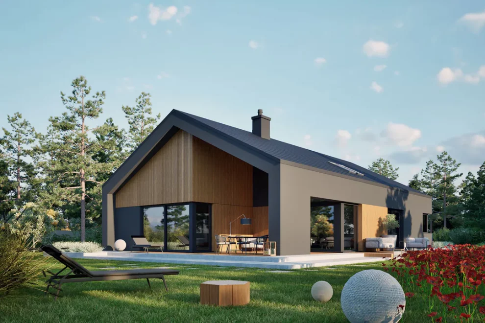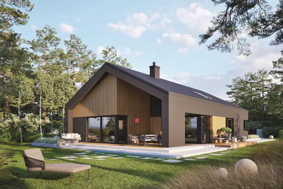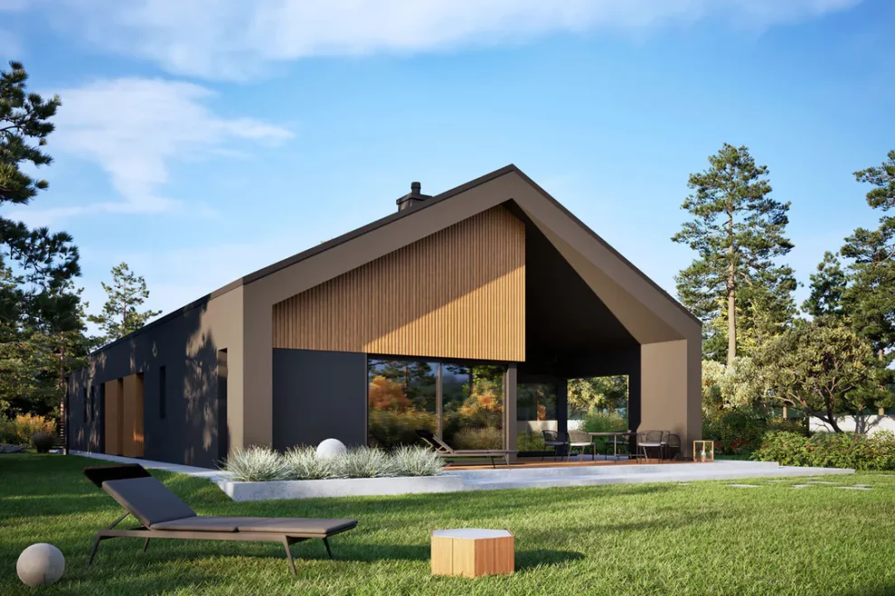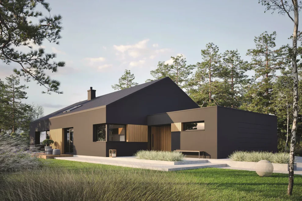В доме предусмотрено несколько спален, объединённая гостиная с столовой и кухней, технические зоны, а также удобный встроенный гараж. Планировка ориентирована на функциональность — каждая зона имеет своё место, а продуманная логика помещений позволяет всем членам семьи чувствовать себя комфортно. Просторная терраса под кровлей служит продолжением жилой зоны и подходит для круглогодичного отдыха.
