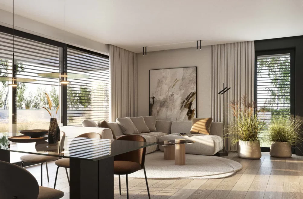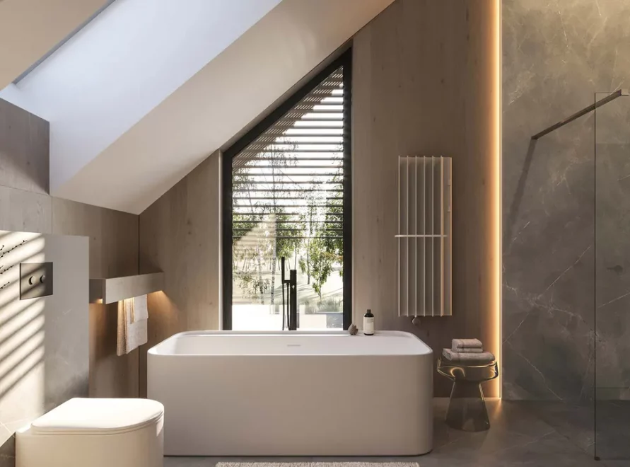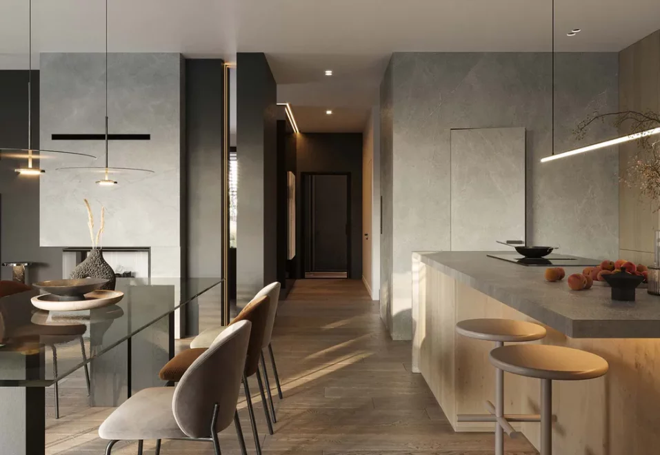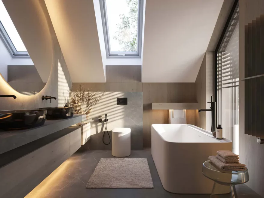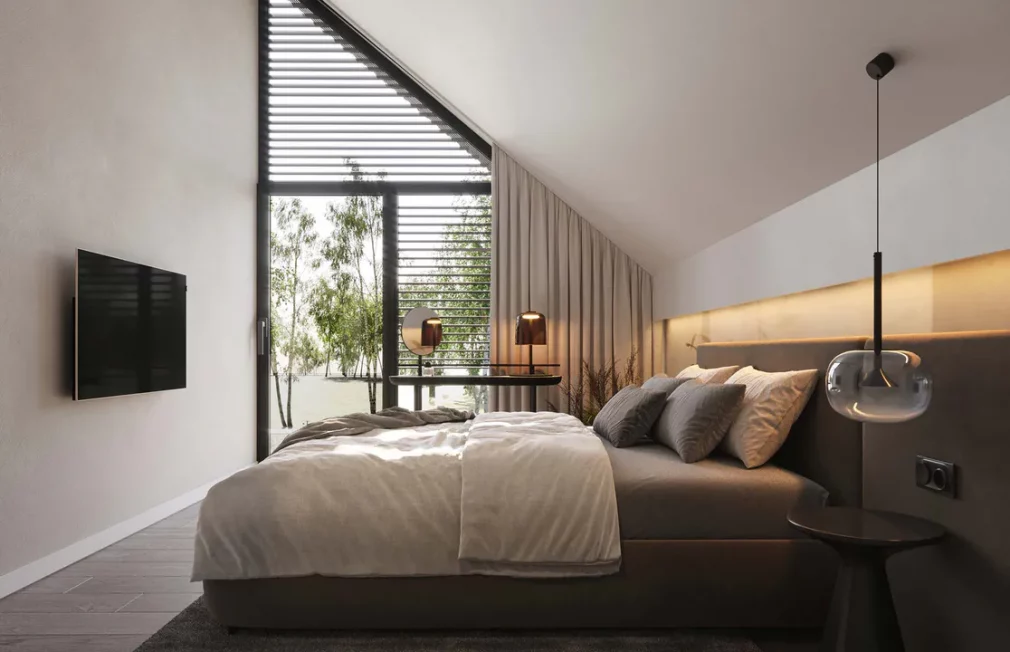 Входная зона организована так, чтобы обеспечить удобство и приватность: продуманное распределение помещений, прямой доступ в гараж и функциональная ванная делают первый этаж максимально практичным. Светлая гостиная со столовой образует просторное ядро дома, плавно переходящее в кухню. Мансарда служит полноценной ночной зоной с несколькими комнатами, гардеробами и отдельной ванной. Благодаря рациональной планировке дом подходит как для семей, так и для тех, кто работает из дома.