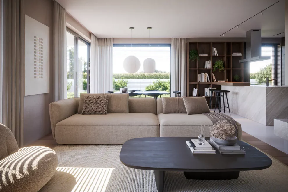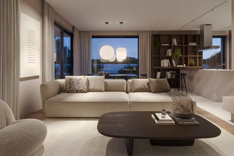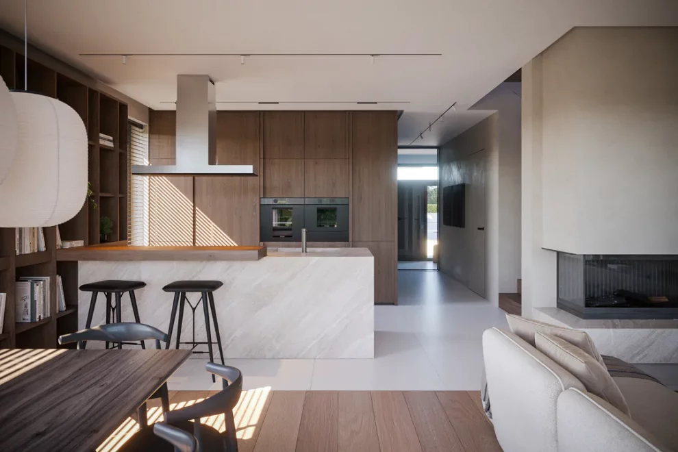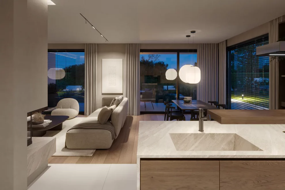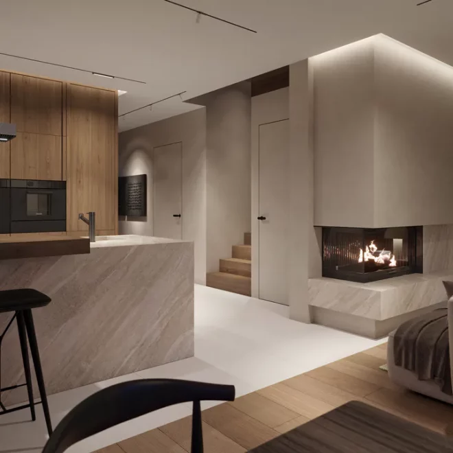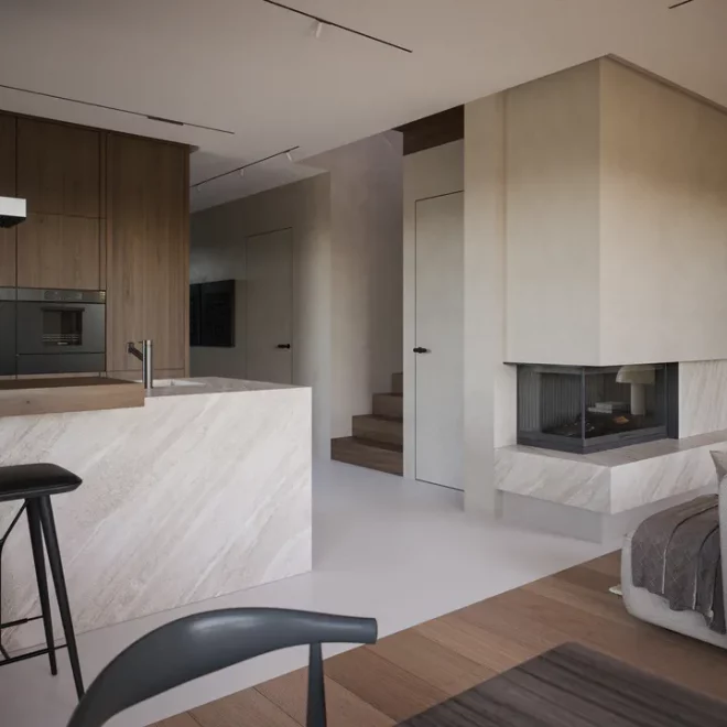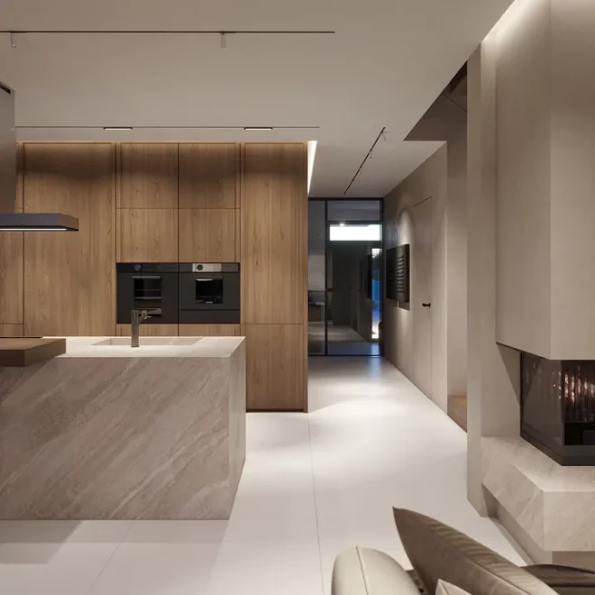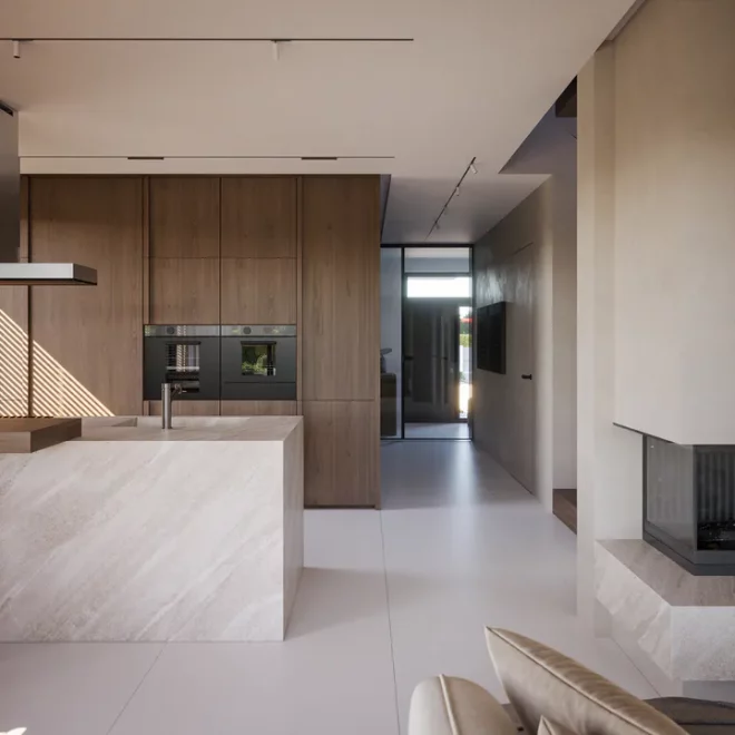 На мансарде расположены три спальни, две ванные комнаты и гардеробные, что делает дом удобным для семьи с детьми. Практичные хозяйственные помещения и котельная, а также встроенный двухместный гараж повышают комфорт и автономность дома. Два балкона и терраса позволяют организовать открытые зоны отдыха с прекрасными видами на участок.
