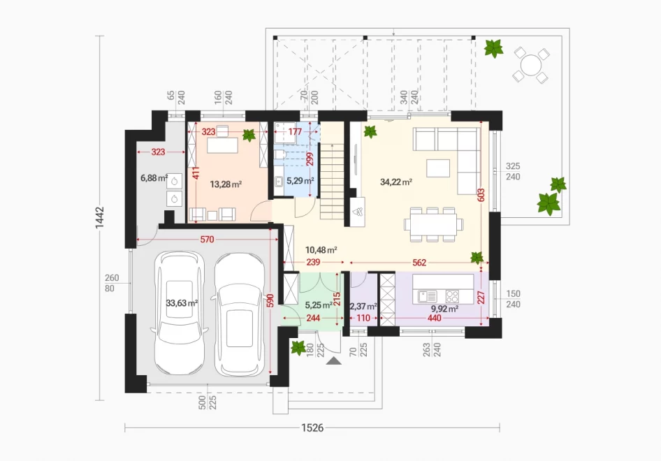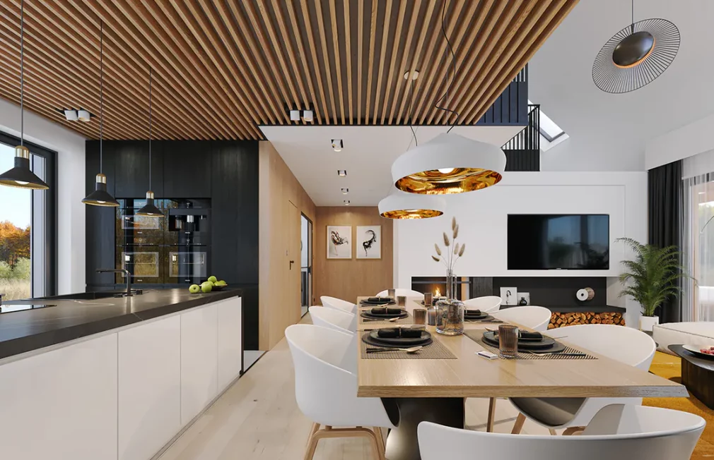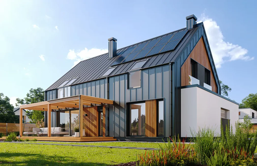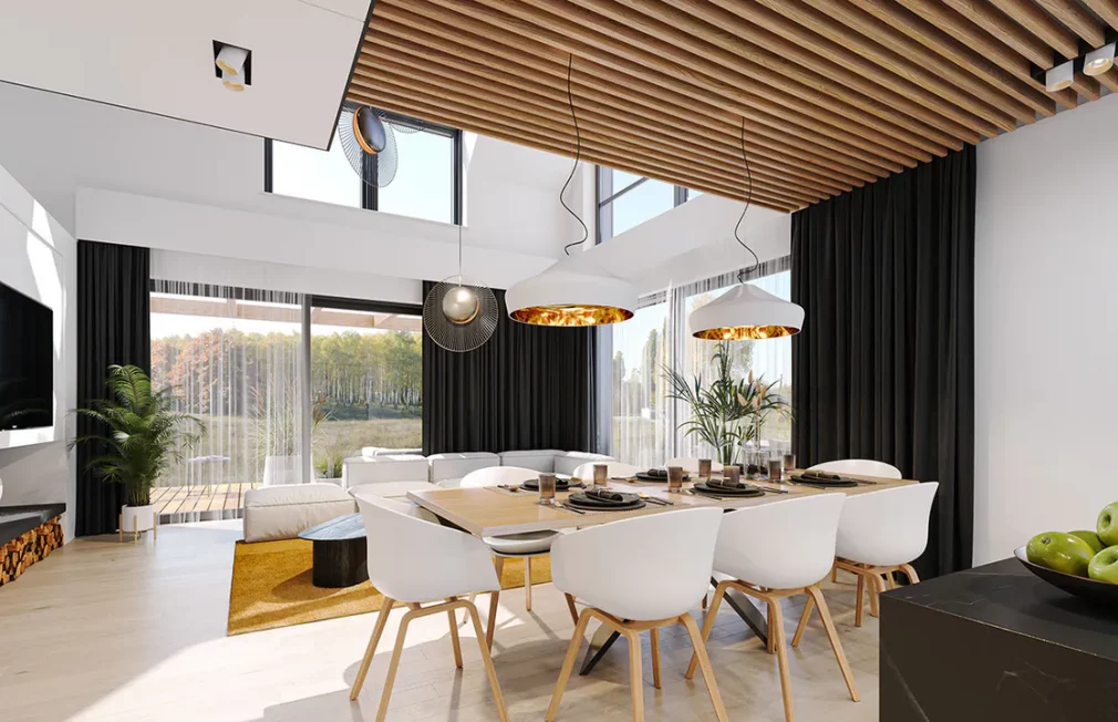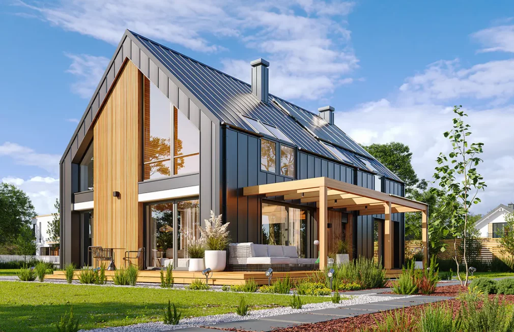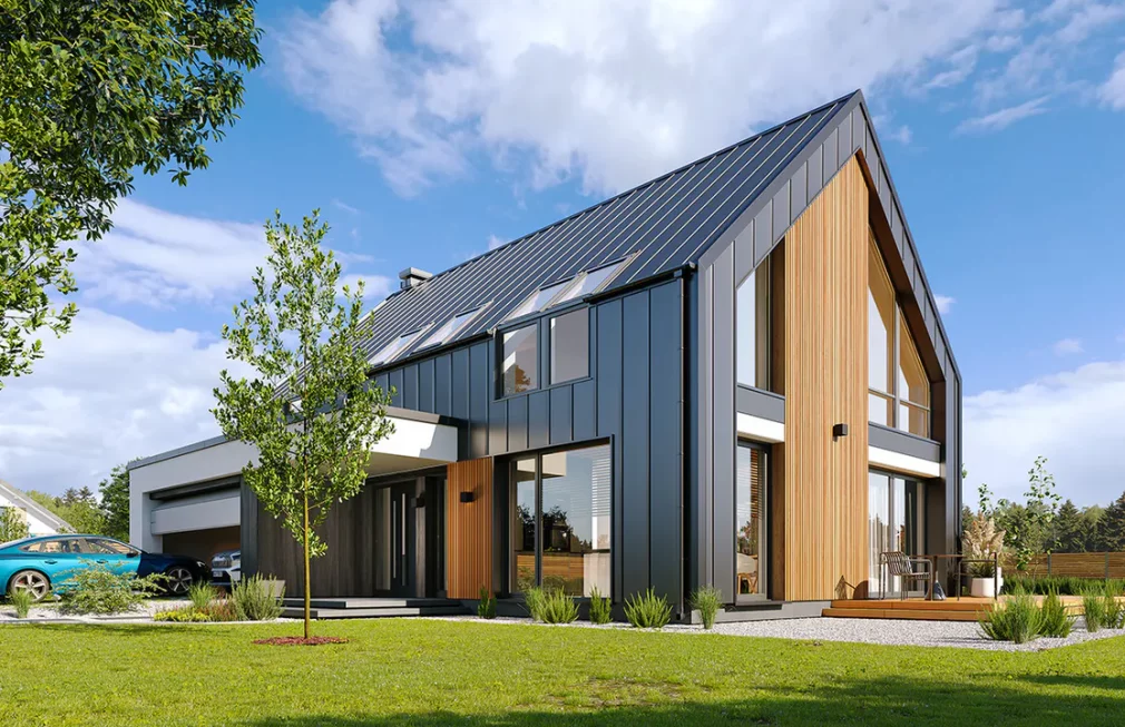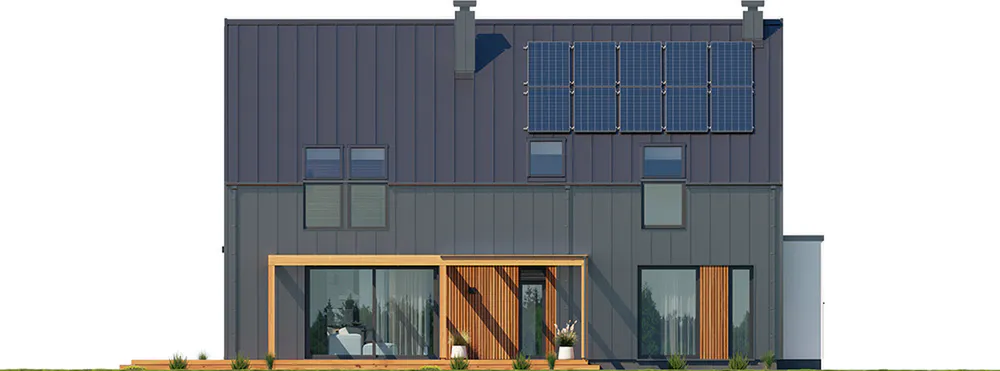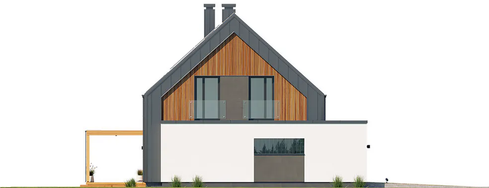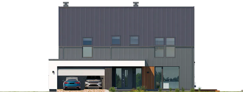 Проект AET-228 — это не просто жилье, а архитектурный манифест, выполненный в популярном стиле Barnhouse. Мы предлагаем уникальный двухэтажный дом барнхаус, который сочетает в себе бескомпромиссную эстетику, высокую функциональность и передовые технологии каркасных домов под ключ барнхаус. Этот дом создан для смелых Инвесторов, смотрящих на будущую застройку с визией и воображением. Главной особенностью является его эффектный силуэт: прямоугольная форма и симметричная двускатная крыша с высоким углом наклона (42°) и мансардной стеной создают ту самую «стодольную» архитектуру, которая приковывает взгляд. Встроенный гараж на два автомобиля органично завершает композицию, не нарушая чистых линий фасада.