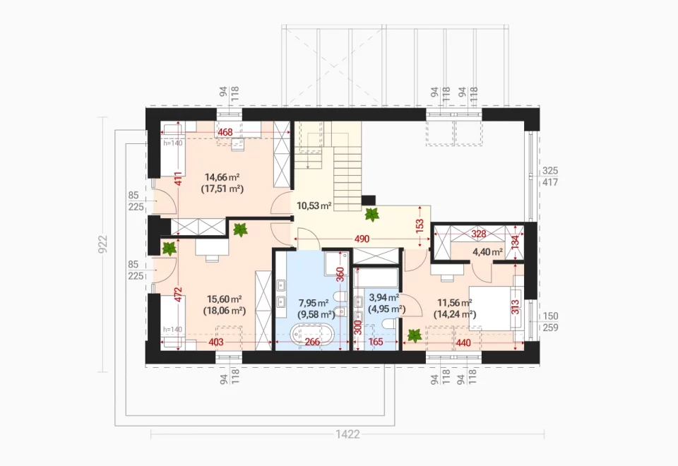 Каркасно-панельный дом с мансардой AET-185Общая площадь92,17 м²Жилая площадь54,38 м²Площадь застройки46,10 м²Площадь крыши64,03 м²Стоимость от4 339 000 руб -