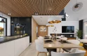 Благодаря своей конструкции, этот каркасный дом в стиле барнхаус проекты позволяет максимально использовать пространство под крышей, обеспечивая простор и обилие естественного света на втором этаже. Продуманное зонирование делает дом чрезвычайно удобным для постоянного проживания: первый этаж — это центр семейной жизни. Здесь расположена просторная и светлая Гостиная, объединенная со Столовой, а также удобная Кухня с Кладовой. Наличие отдельной Комнаты (кабинет или гостевая спальня), вместительного Холла, Тамбура и Котельной, доступной из гаража, обеспечивает высочайший уровень практичности. На мансарде находится приватное пространство: три комфортабельные Комнаты (одна из которых может быть мастер-спальней с Гардеробной) и две Ванные комнаты гарантируют уединение и удобство для каждого члена семьи. Высокая мансардная стена позволяет избежать скошенных потолков в большей части помещений. Этот проект — пример современного, энергоэффективного решения, которое, несмотря на свои внушительные габариты, обеспечивает простоту и скорость возведения, характерную для каркасной технологии.