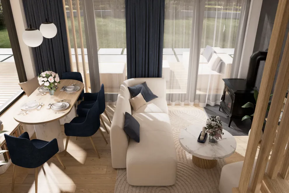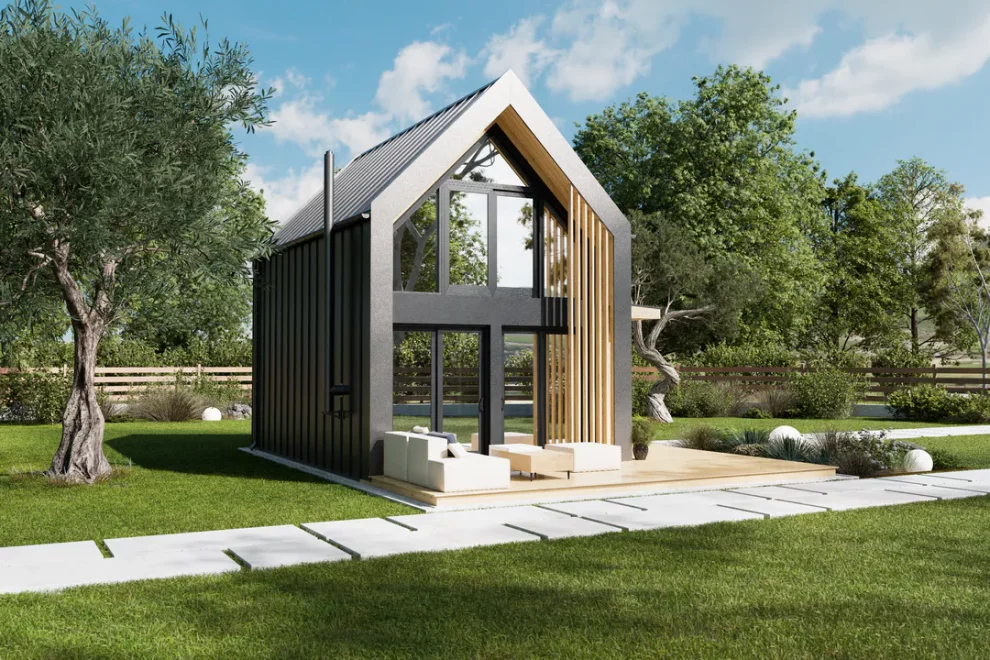 Проект AET-232 представляет собой воплощение идеального рекреационного жилья. Этот каркасный дом барнхаус проект создан для тех, кто ценит минималистичное, но при этом максимально функциональное пространство для отдыха или круглогодичного проживания. Современная форма в стиле «стодола», простая геометрия и оптимальная конструкция позволяют существенно снизить стоимость строительства, делая его доступным для широкого круга инвесторов, желающих каркасный дом барнхаус купить.