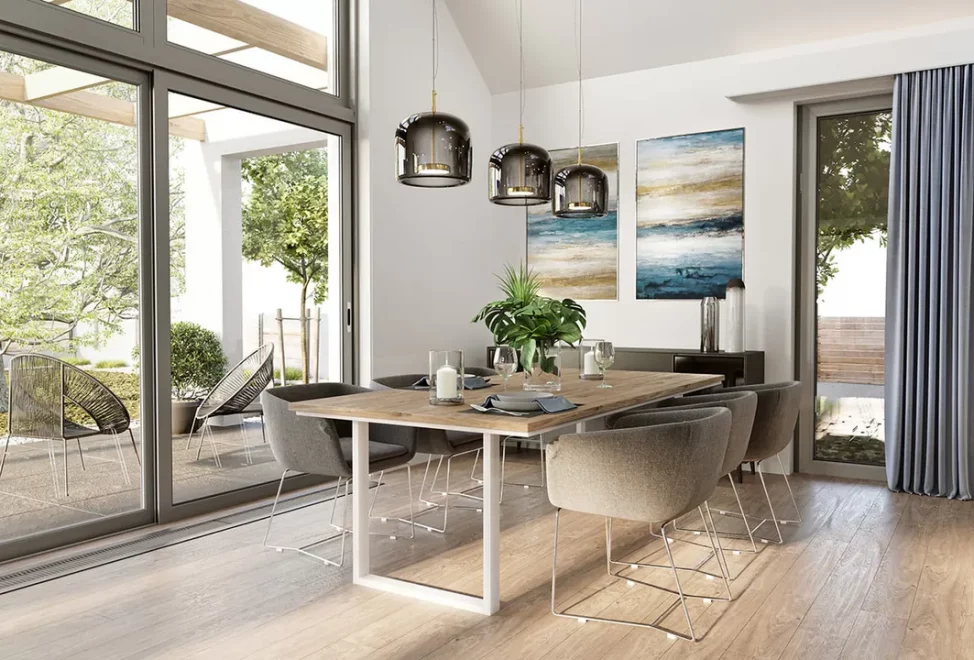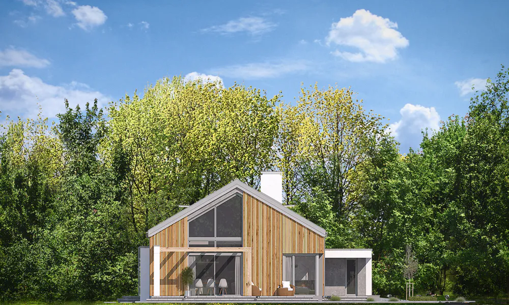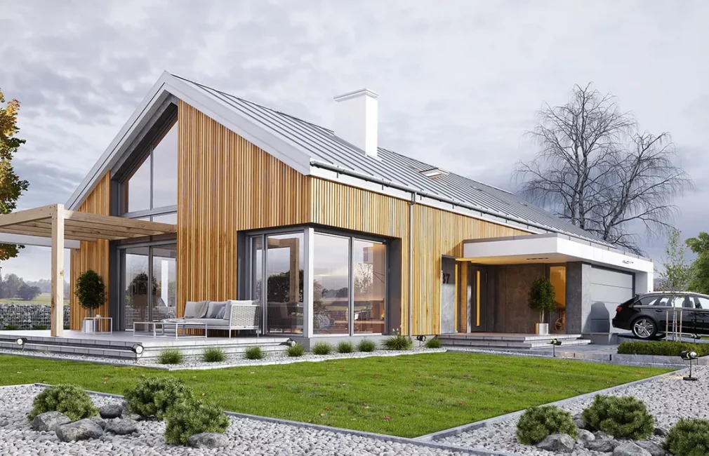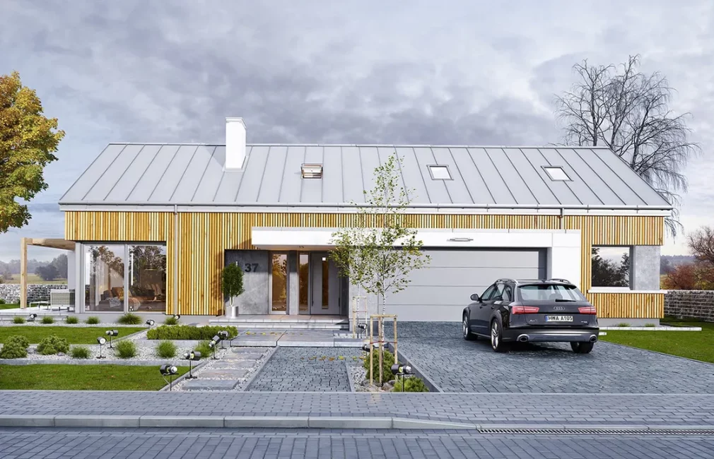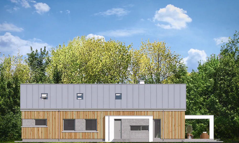 Проект AET-235 — это очередное, впечатляющее дополнение к серии «Мечта», представляющее собой роскошный одноэтажный дом с потенциалом для расширения. Это выдающийся образец современной стилистики «стодолы», который выбирают инвесторы, ценящие выразительный образ и высочайший комфорт. Крыша без свесов, фальцевая металлическая кровля и фасады, отделанные вертикальной деревянной рейкой с эффектными вставками под бетон, создают чистый, современный образ, который выделяет этот дом среди прочих каркасные дома в стиле барнхаус.